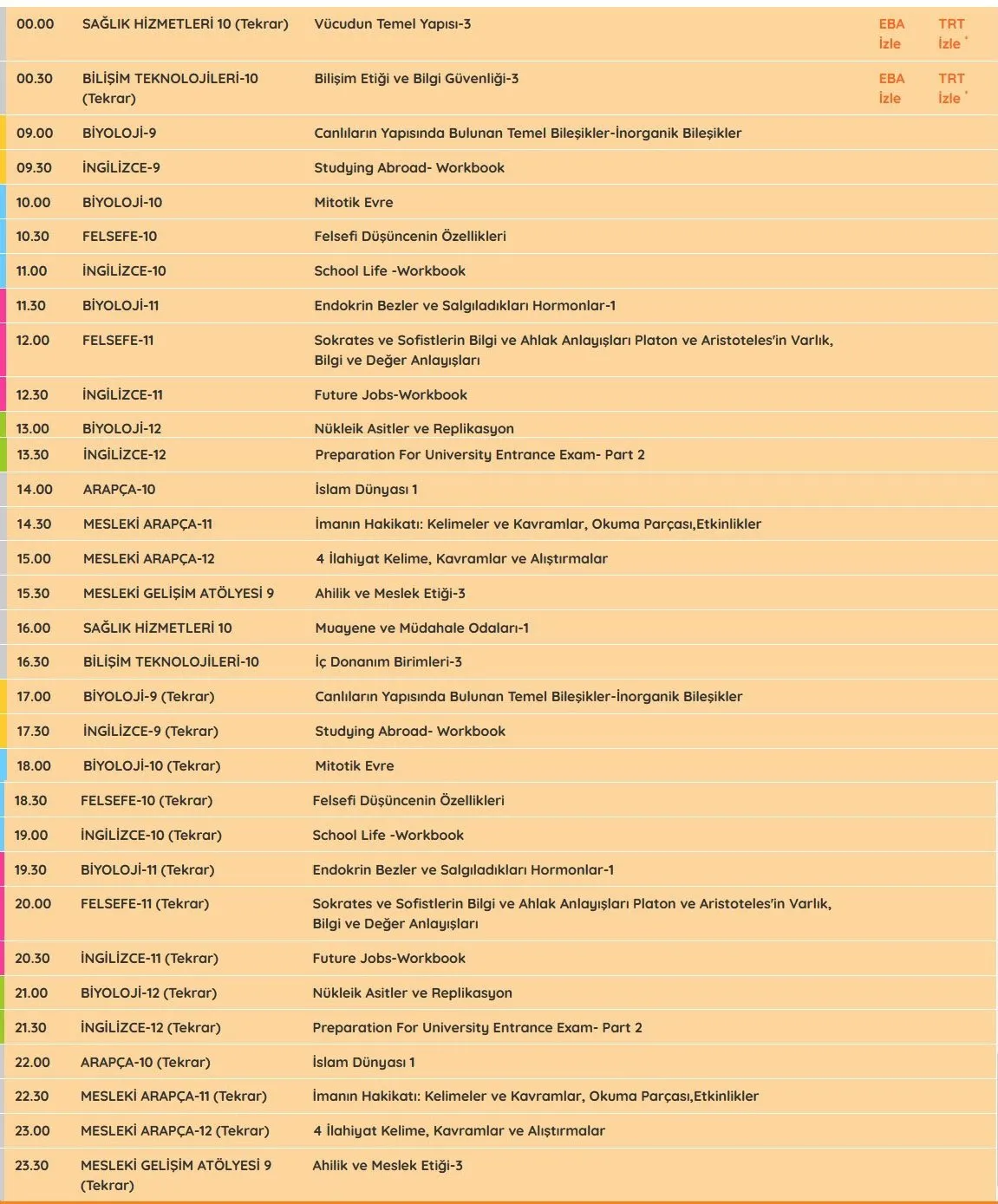 EBA TV 9 EKİM 2020 CUMA LİSE DERS PROGRAMI TÜM SINIFLAR DERS SAATLERİ