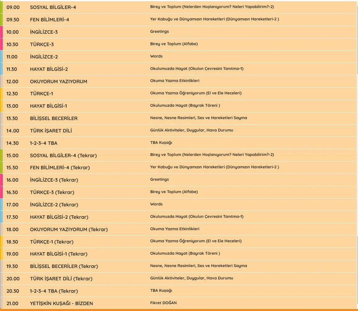 EBA TV 9 EKİM 2020 CUMA İLKOKUL DERS PROGRAMI TÜM SINIFLAR DERS SAATLERİ