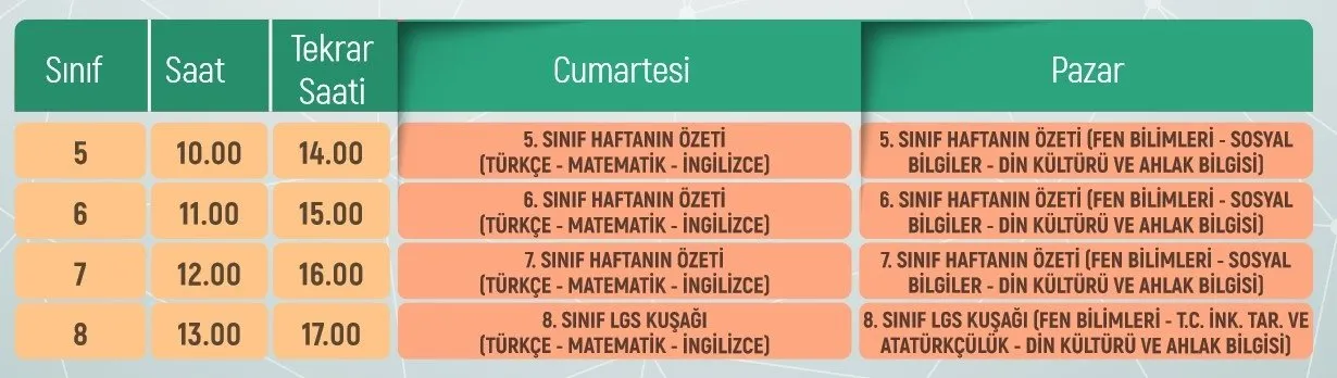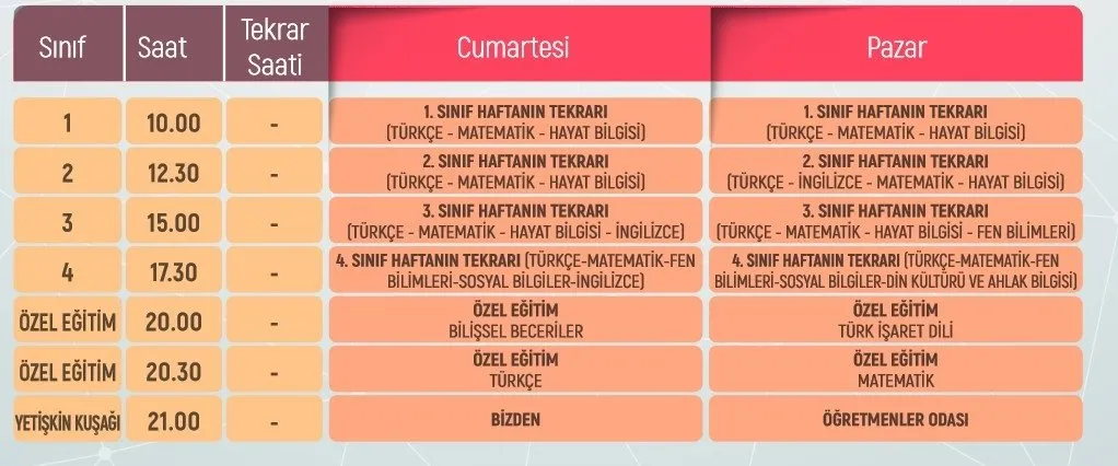 EBA UZAKTAN EĞİTİM DERS PROGRAMI DERS SAATLERİ (İLKOKUL LİSE ORTAOKUL) TÜM SINIFLAR