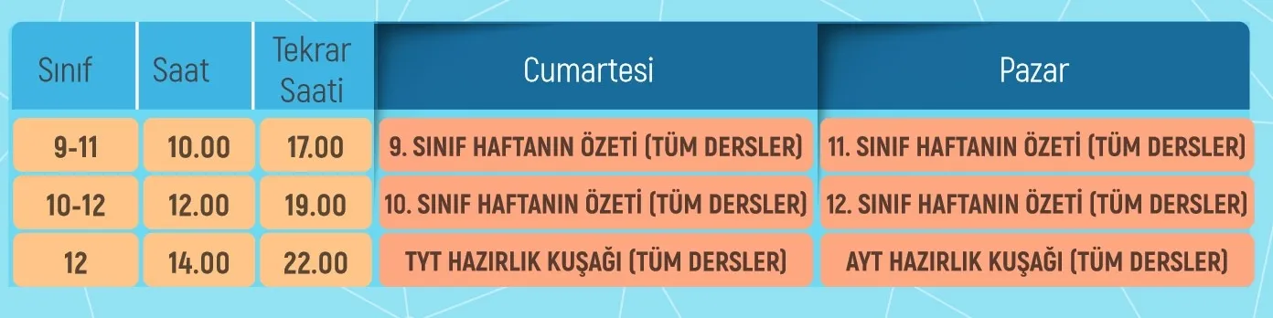 EBA UZAKTAN EĞİTİM DERS PROGRAMI DERS SAATLERİ (İLKOKUL LİSE ORTAOKUL) TÜM SINIFLAR