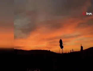 Van'ın Özalp ilçesinde görünen kuzey ışıkları gökyüzünü adeta kırmızıya boyadı.