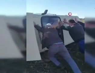 Vatandaşlar takla atan aracı elleriyle düzelterek yaralıyı kurtardı | Video