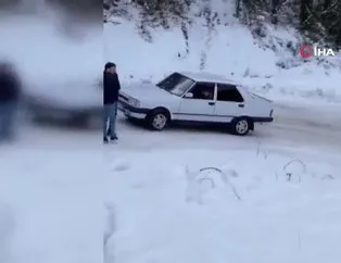 Yollar buz pistine döndü: Araçlar böyle kaydı