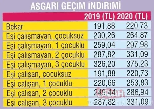 2020 YILI YENİ ASGARİ GEÇİM İNDİRİMLERİ