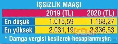 2020 YILI EN DÜŞÜK VE EN YÜKSEK İŞSİZLİK MAAŞLARI