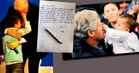 Erkan daha sonra yazdığı mektubu verdi ve tercüman aracılığıyla kızı Chelsea'ye selam söyledi. Küçük Erkan, Bill Clinton'ın seneye yapacağı sünnet düğününde kirvesi olmasını da istedi. Erkan, mektubunda ise şu ifadelere yer verdi: "Bu mektubu annem ve babam görmeden, gizli gizli yazdım. Clinton Amca, senin burnunu sıktım diye herkes bana 'Erkan Bebek' diyor. Gazeteciler peşimi bırakmıyor. Ama benim ne güzel giysilerim, ne de bilgisayarım var. Babam alamıyor. Çünkü bir işi ve parası yok. Çok borcu varmış, öyle diyor. Bana ve kardeşlerime hiçbir şey alamıyor. Evimiz de yok. Sen büyük adamsın. Başkansın. Babama iş bulabilir misin? Sen bize ev alır mısın? O zaman babam kira parasıyla bilgisayar alır. Çok teşekkür ederim." Lüks konut ve ofis projelerini hayata geçiren Sinpaş Grubu'nun 35'nci yıl kutlamaları çerçevesinde düzenlediği "Sürdürülebilir Başarı İçin Liderlik" konferansına katılan Bill Clinton'ın mektubu alınca çok şaşırdığı öğrenildi.