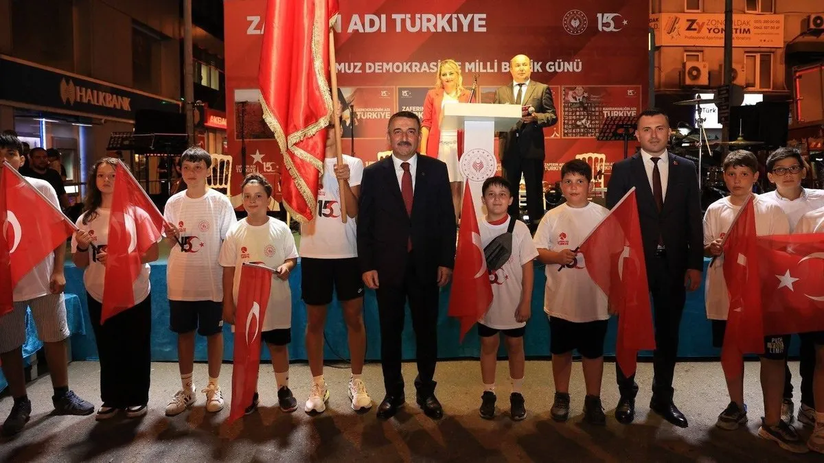 Zonguldak Valisi Osman Hacıbektaşoğlu, yaptığı konuşmada, "Bu anlamlı gecede bir araya gelerek; milletçe onurumuza sahip çıktığımızı, vatanımıza olan bağlılığımızı ve demokrasimize duyduğumuz inancı bir kez daha güçlü bir şekilde ifade ediyoruz. Kaybettiğimiz canlarımızın acısını yüreğimizde hissederken, gösterilen eşsiz duruşun haklı gururunu da hep birlikte yaşıyoruz. Çünkü 15 Temmuz, milletimizin kararına yönelmiş bir tehdide karşı sergilenen tarihî bir duruşun adıdır" diyerek şunları söyledi: "2016'nın o karanlık gecesinde, yıllar boyunca güveni suistimal eden ve devletin temel kurumlarına sızan bir yapı, vatandaşlarımızın imkânlarını yine onlara yöneltmekten çekinmemiştir. Fethullahçı Terör Örgütü, bir iktidar değişikliğini değil; doğrudan anayasal düzeni ortadan kaldırmayı ve ülkemizi dış müdahalelere açık hâle getirmeyi amaçlamıştır. Eğitimden yargıya, silahlı kuvvetlerden medyaya dek pek çok alana nüfuz eden bu örgüt, inançları istismar ederek güç kazanmış; nihayetinde silahını kendi toplumuna çevirmiştir. Türkiye Büyük Millet Meclisi'nin bombalanması, şehirlerde dolaşan tanklar ve silahlı güçlerin sivilleri hedef alması; sadece can kayıplarına değil, aynı zamanda ortak vicdanımıza ve toplumsal huzura yönelmiş açık bir saldırıdır. Ancak bu hain kalkışmanın planlayıcıları, çok önemli bir gerçeği göz ardı etmiştir: Aziz milletimiz, tehdit karşısında geri çekilmez; özgürlüğüne yönelen hiçbir girişimi yanıtsız bırakmaz.