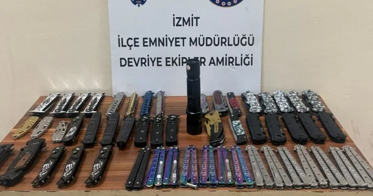 Yapılan aramada çocukların üzerinden 14 kelebek tabir edilen bıçak, 13 sustalı tabir edilen bıçak, 25 normal bıçak olmak üzere toplam 52 kesici alet ile ve şok cihazı ele geçirildi.