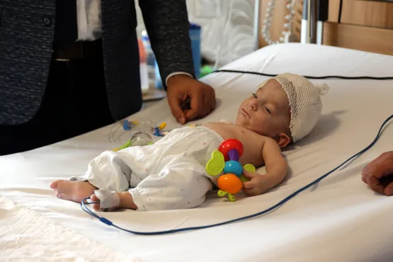 Ameliyata alınan küçük çocuk, yaklaşık 3 saatlik operasyonla sağlığına kavuştu.