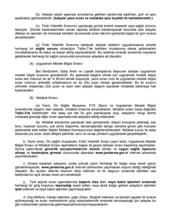 Adaylar detaylı bilgiye www.jandarma.gov.tr internet sitesi üzerinden ulaşabilir.