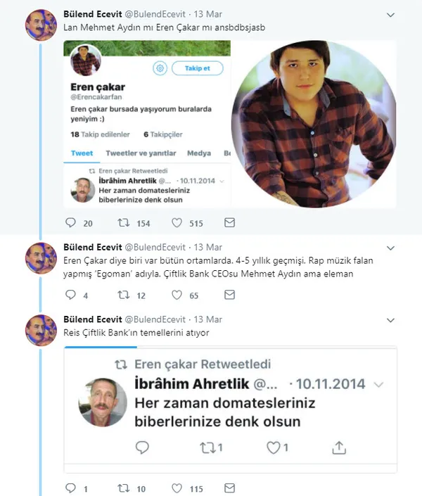 Mehmet Aydın'ın kim olduğu, neler yaptığına ilişkin soru işaretleri hala gizliliğini korurken Twitter kullanıcısı Bülend Ecevit, Mehmet Aydın'ın kimliğine yönelik paylaşımlarda bulundu. Bu paylaşımlarda, Mehmet Aydın'ın internet üzerinde kendisini Eren Çakar olarak tanıttığı, 'Egoman' adı altında rap müzikle uğraştığı, çıplak gösteren gözlük satışında bulunduğunu ve sıklıkla oyun forumlarında vakit geçirdiğini görülüyor.