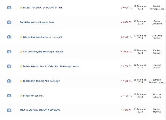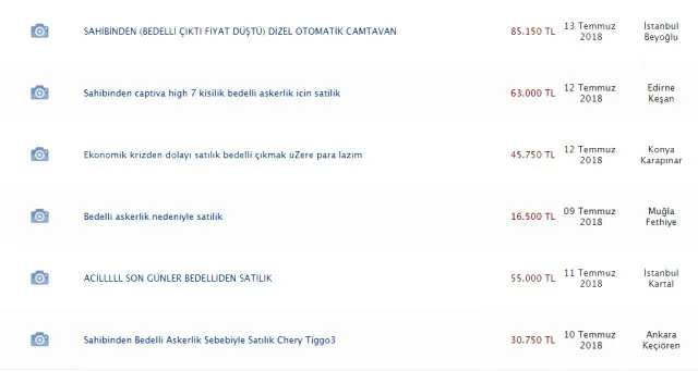 İşte bedelli askerlik sonrası satışa çıkarılan araçların ilanları: