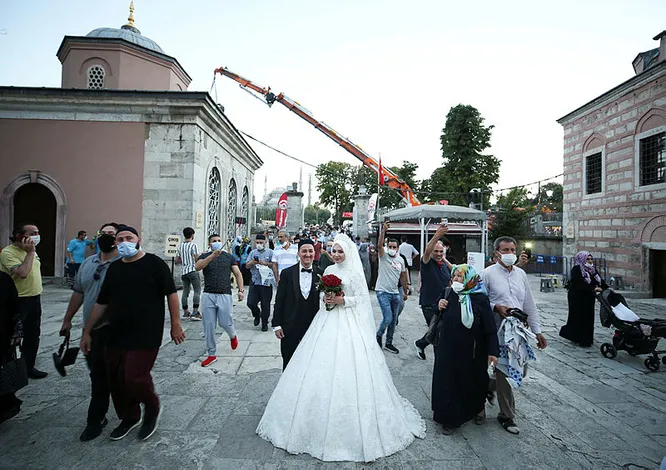 "AYASOFYA DAHA GÜZEL BİR ŞEKİLDE AÇILAMAZDI, O YÜZDEN GELİNLİKLE GELDİM"
