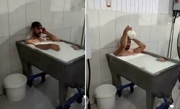 Konya'da, süt toplama merkezinde süt banyosu yaparken çekilen görüntülerinin ortaya çıkmasının ardından gözaltına alınan Emre Sayar ile görüntüyü çeken Uğur Turgut, çıkarıldıkları mahkemece tutuklanmıştı.