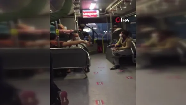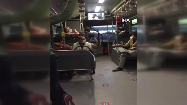 Karşılıklı hakaretleşmenin yaşandığı tartışmada kadın yolcu, "Terbiyesiz karşına geldim oturuyorum. Ya zaten bu saygısızlık. Ben bir bayanım, senin karının kızının yanında da böyle otursunlar" diyerek tepki gösterdi.