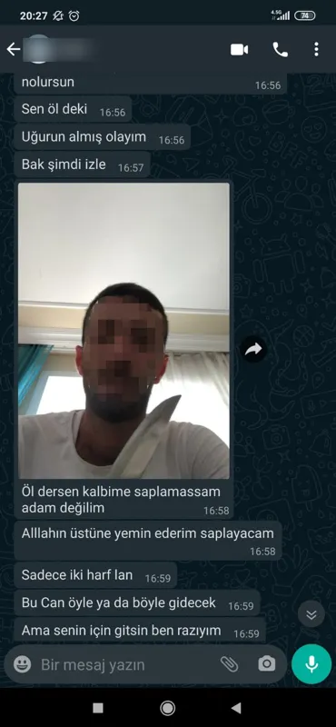 Fotoğraflar yüzünden babasının rahatsızlandığını söyleyen A.M., eski sevgilisinin farklı telefon numaralarından kendisine sürekli tehdit mesajları göndermeye devam ettiğini belirterek yardım istedi. M.Ç. hakkında 3 kez şikayet dilekçesi verdiğini anlatan A.M., "Benim başka fotoğraflarım da olduğunu iddia ediyor. Fotoğrafların içeriğini bilmiyorum, fotoğrafları 3 ayrı flaş diske kaydedip toprağa gömdüğünü ileri sürüyor. Şikayet edersem onları çıkartıp, aileme göndereceğini söylüyor. Sürekli farklı telefonlarla mesaj gönderiyor" dedi.