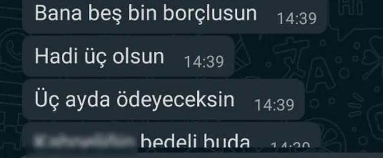 M.Ç.'nin sürekli birlikte olmak için mesaj gönderdiğini, kimi zaman da para istediğini ileri süren A.M., "Birlikte olmak istiyor. En son 3 bin TL istedi. Buluşmak istiyor, gelemeyeceğimi söyleyince beni komşularıma rezil etmekle tehdit ediyor. İş arkadaşlarımla da tehdit edip fotoğraflarımı, konuşmalarımı atacağını söylüyor. Şu an bu adam beni zor durumda bırakmak için tanıdığım herkesle iletişime geçiyor. Korkuyorum. Aileme yaklaşmasını istemiyorum. Türkiye'deki kadın cinayetlerinin bir yenisi olmak istemiyorum, öldürülmekten korkuyorum. Beni bu adamdan kurtarın" diye konuştu.