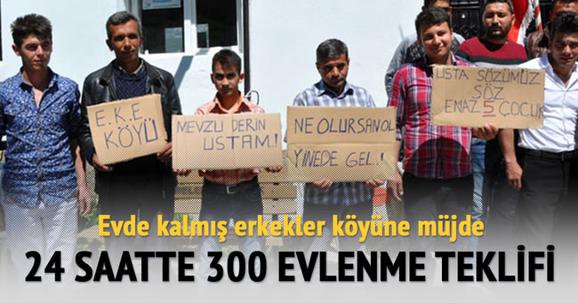 Evlenmek için ellerinde, 'Usta sözümüz söz en az 5 çocuk', 'Mevzu derin ustam' ve 'Ne olursan ol yine de gel', E.K.E. köyü (Evde Kalmış Erkekler) yazılı döviz ve sancakla köy meydanına yürüyerek, Cumhurbaşkanı Recep Tayyip Erdoğan ve Başbakan Ahmet Davutoğlu'dan yardım isteyen gençlere talip yağdı.