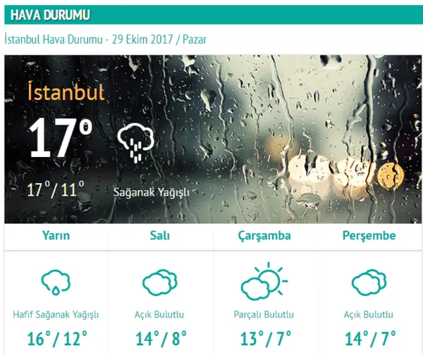 İstanbul: Parçalı ve çok bulutlu, bu sabah saatleri ile gece saatlerinde sağanak yağışlı 17