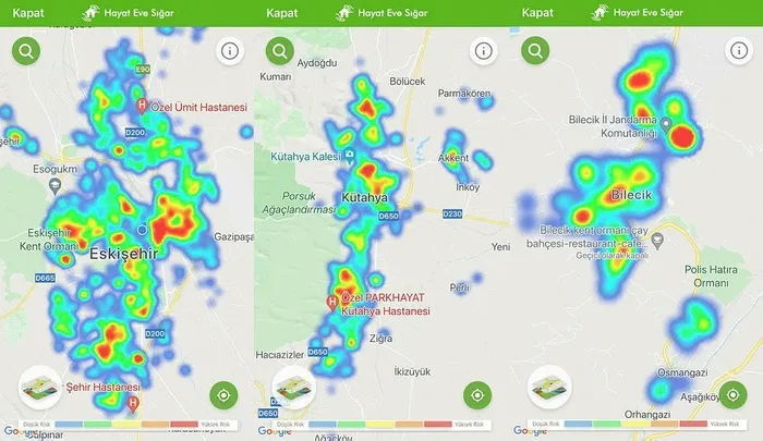 Eskişehir, Bilecik ve Kütahya'daki vaka oranları, güncellenen HES uygulamasındaki risk haritasına da yansıdı.