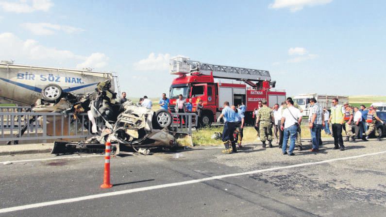 Diyarbakır'ın Bismil ilçesine bağlı Akbaş köyünde görev yapan öğretmenlerin içinde bulunduğu otomobil mıcırlı yolda bariyerlere çarptı. Araçtaki okul müdürü ve 3 öğretmen öldü. Kazada bir öğretmen de yaralandı. Feci kaza, Bismil-Batman karayolu üzerinde, Sinan köyü yakınlarındaki Salât Köprüsü mevkisinde meydana geldi. Akbaş Köyü İlköğretim Okulu'nda görev yapan okul müdürü 39 yaşındaki Hasan Ortaç, dün öğle saatlerinde, 21 TA 603 plakalı otomobiliyle Diyarbakır'a gitmek üzere meslektaşlarıyla okuldan ayrıldı. Ortaç'ın kullandığı araç Bismil-Batman sınırındaki Salât Köprüsü mevkisinde mıcıra girdi. Aşırı hız nedeniyle direksiyon hâkimiyetini kaybeden Ortaç, yolun karşısına geçerek bariyerlere çarptı. Yaklaşık 100 metre sürüklenen araç ikiye bölündü. Hasan Ortaç, İhsan Bitkin (26) ve Halime Adımak (26) olay yerinde, ağır yaralanan Ahmet Çetin de kaldırıldığı hastanede hayatını kaybetti. Araçta bulunan diğer öğretmen Seher Keklik ise ağır yaralandı. Öte yandan Kahramanmaraş'ta ehliyetsiz C.K'nin (16) kullandığı otomobil bir evin bahçesine girdi. Olayda bahçede oynayan 4 yaşındaki Buse Taş yaşamını yitirdi.