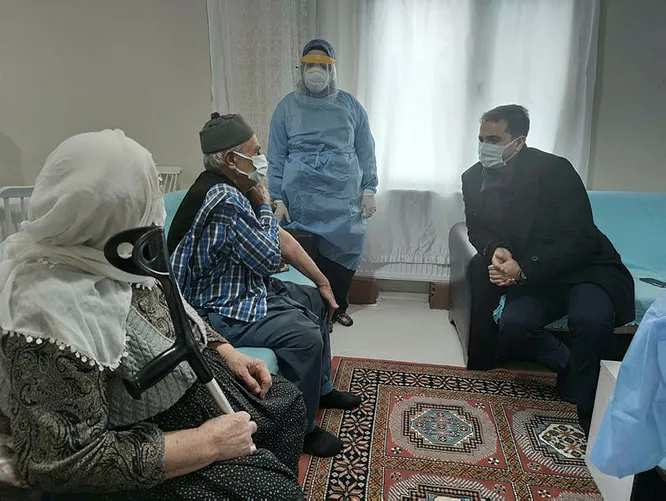 Ekici çiftine sağlıklı ömür temennilerinde bulunan İlçe Kaymakamı Mehmet Güder, "Covid-19 salgını ve aşılama sürecinde sağlık çalışanlarımız büyük fedakarlıklar gösteriyor. Başımızın taçları olan yaşlılarımız için ilçemizde aşılama çalışmaları sürüyor. Biz de bu gün sağlık çalışanlarımızın aşı uygulayacağı Şeref amcamızın evine geldik. Hem aşı yapılırken yanlarında olalım istedik hem de yapılan aşı çalışmalarını görmek istedik. Birlikte güzel sohbetimiz oldu. Allah sağlıklı ömürler versin. Bu vesileyle bu zorlu süreçte fedakarlıkla görevlerini yürüten sağlık çalışanlarımıza, kolluk güçlerimize çok teşekkür ederim" dedi.
