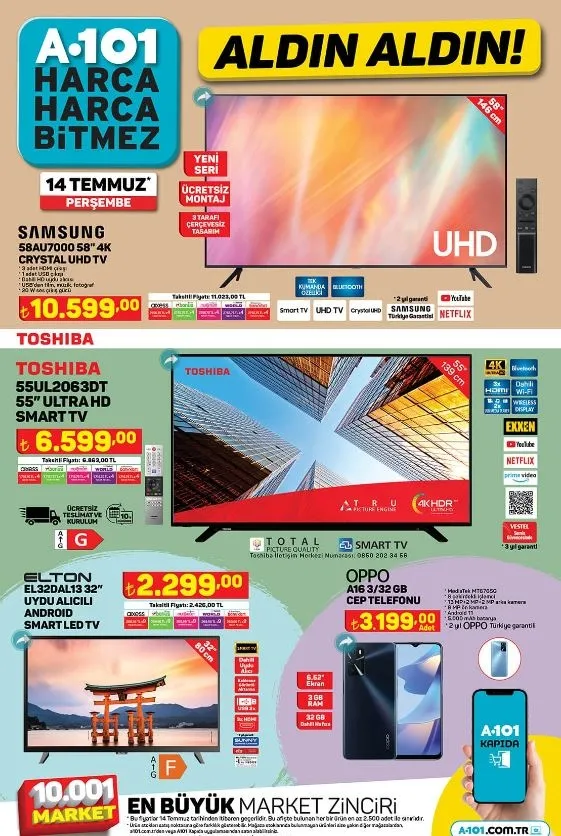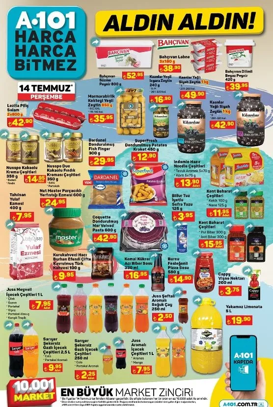 A101 aktüel ürünler kataloğu alışveriş tutkunlarının bilgisine sunuldu. Marketlerin indirim günlerini takip eden pek çok kişi, A101 aktüel kataloğu ve bu haftaki indirimli ürünler listesi hakkında araştırmalarını hızlandırdı. Peki bu Perşembe neler indirimde, bu haftaki A101 aktüel ürünler neler? İşte, 14 Temmuz A101 Aldın Aldın kataloğu ve bu haftaki indirimli ürünler listesi!