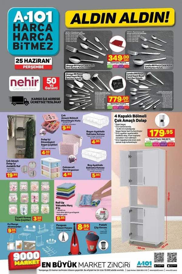 Yeni haftanın A101 aktüel ürünler kataloğu müşterilerinin yüzünü güldürüyor. Her Perşembe haftanın kampanyalı ürünlerini raflara dizen A101 kataloğunda bu hafta sürpriz indirimler yer alıyor. Beyaz eşyadan, elektroniğe, tekstilden, mutfak araç ve gereçlerine varıncaya kadar yüzlerde üründe binlerce çeşit fırsatı var. Haftanın yıldız ürünlerinden yararlanmak için acele edin. İşte 25 Haziran A101 aktüel ürünler kataloğu indirimli tam listesi…