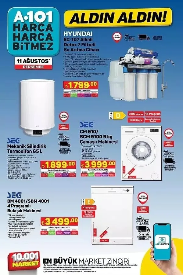 A101 aktüel ürünler kataloğunda haftanın fırsatları için nefesler tutuldu. 11 Ağustos 2022 Perşembe günü mağazalarda yerini alacak olan indirimli ürünler incelenirken en dikkat çeken ürün ise tekne oldu. 4,95 metre uzunluğundaki kamaralı fiber tekne 79.999 TL'lik fiyatıyla bu hafta mağazalarda satışa çıkacak indirimli ürünler arasında. Peki, bu hafta A101 aktüel ürünlerde başka hangi fırsatlar yer alıyor? İşte haftanın indirimli ürünlerinin yer aldığı A101 aktüel kataloğu...