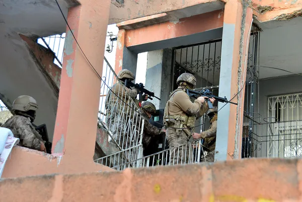30 şüphelinin adresini belirleyen ekipler, operasyon için harekete geçti. Polis helikopterinin havadan destek verdiği operasyonda özel harekat timleri, evlerin demir kapılarını koçbaşlarıyla kırarak içeriye girdi.