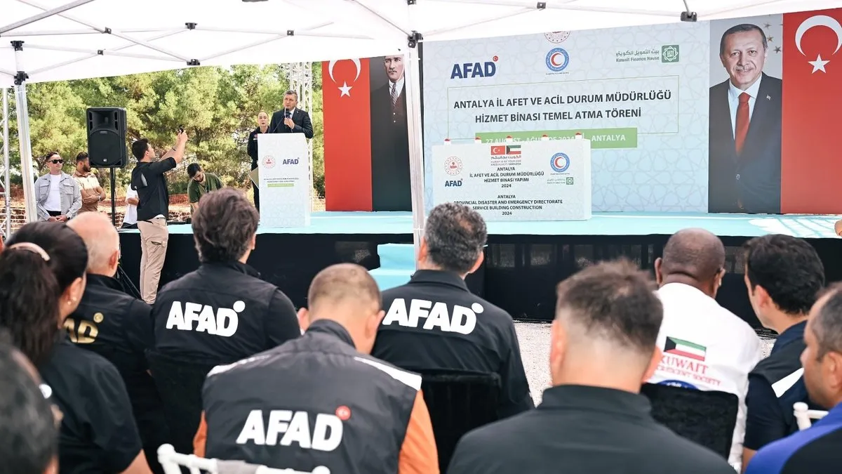 İçişleri Bakanlığı Afet ve Acil Durum Yönetimi Başkanlığı ile Kuveyt Kızılayı arasında yapılan uluslararası bir anlaşma kapsamında finanse edilecek olan Antalya AFAD hizmet binası temel atma törenine Antalya Valisi Hulusi Şahin, Vali Yardımcı Tahsin Aksu, Kuveyt Kızılayı Afet ve Acil Durum Birimi Başkanı Khalid El Mutari, Döşemealtı Kaymakamı Nuri Özder, Afetlere Müdahale Hizmetleri Genel Müdürü Dr. Sadi Ergin, Projelendirme ve Yapım İşleri Daire Başkanı Levent Uçarlı, Dış İlişkiler Dairesi Başkanı Maruf Yaman Antalya AFAD Müdürü Necmi Erçin, Kuveyt Kızılayı Medya ve Halkla İlişkiler Müdürü Ahmad Abduljabbar Al Naibari ve AFAD personeli katıldı.