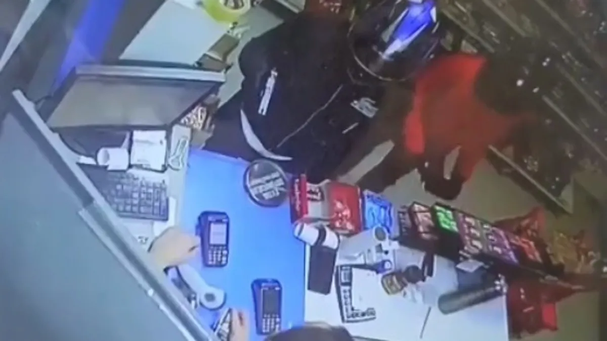 Adana akaryakıt istasyonun da silahlı soygun gerçekleşti. İş yerinin marketine gelen kasklı iki soyguncu, silah zoruyla kasadaki paraları aldı. O anlar anbean güvenlik kamerasına yansıdı.