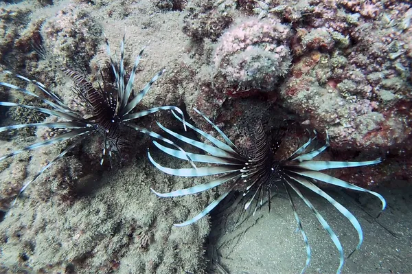 Antalya'nın dünyaca ünlü falezlerinin altını yaşam alanı olarak seçen aslan balıkları sürüler oluşturmuş halde. Kayalık bölgede yaşamayı seven zehirli bir balık türü olan aslan balıkları, kendilerini tehlikede hissettiklerinde yüzlerini kayalıklara, kuyruk kısımlarını ise tehlikeye yönelterek kendilerini korumaya alıyor.