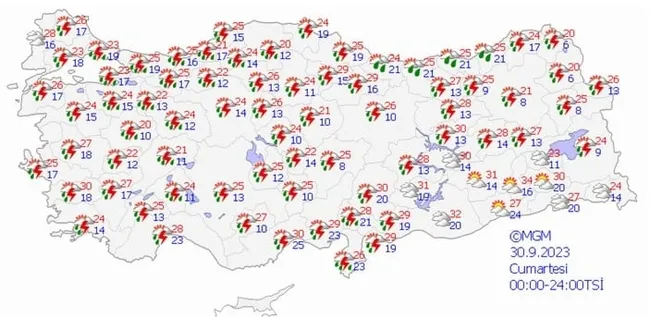 AFAD tarafından yapılan açıklamada "Meteoroloji'den alınan son bilgilere ve yapılan değerlendirmelere göre; 30 Eylül Cumartesi günü, sabah saatlerinden itibaren; İstanbul, Kocaeli, Sakarya, Yalova ile Tekirdağ'ın doğusu, Bursa ve Balıkesir'in kuzeyinde, Çanakkale'nin doğusunda, Bolu, Düzce, Zonguldak, Bartın, Karabük ve Kastamonu çevrelerinde, Adana'nın doğusu, Osmaniye ve Hatay çevrelerinde yerel olarak kuvvetli ve çok kuvvetli yağış bekleniyor. atandaşlarımızın sel, su baskını, heyelan, yıldırım ve yağış anında kuvvetli rüzgar gibi olumsuzluklara karşı dikkatli olmasını önemle hatırlatıyoruz." ifadeleri yer aldı.