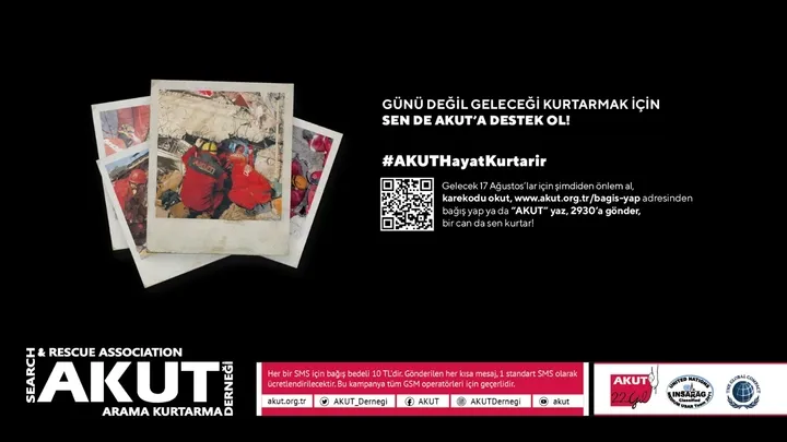 Günü değil, geleceği kurtarmak ve gelecek "17 Ağustos"lara şimdiden önlem almak için, "AKUT" yazıp, 2930'a mesaj gönderebilir ya da https://www.akut.org.tr/bagis-yap linkinden direk bağış yapabilirsiniz.
