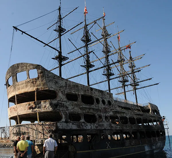 The Last King'in kendi konseptinde, turizm amaçlı korsan teknesi olarak sadece Türkiye'de değil dünyada emsali olmadığı belirtildi. yangının çıkış sebebi araştırılıyor.