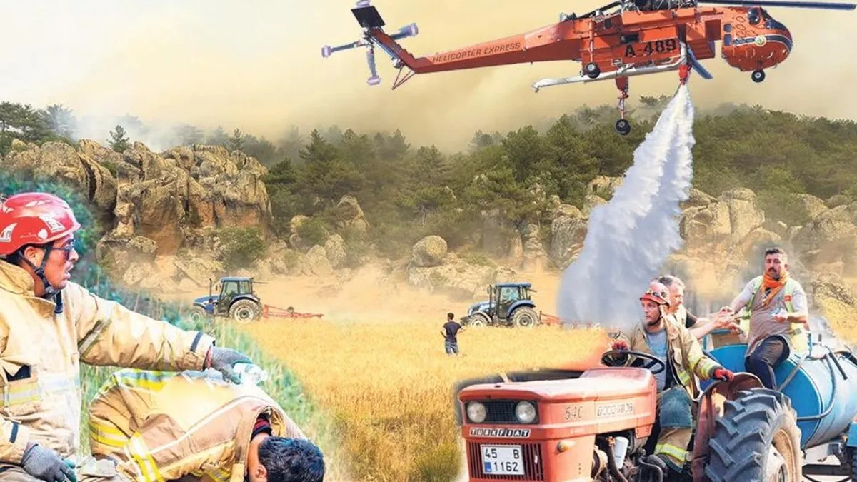Tarım işçilerinin verdiği bilgilerle yön belirleyen ekipler, ormanı kurtarmak için canla başla çalıştı. Öğle saatlerinde sıcaklık 40 dereceyi buldu. Ancak gökyüzünü saran yoğun duman bulutları güneşi adeta perdeledi.