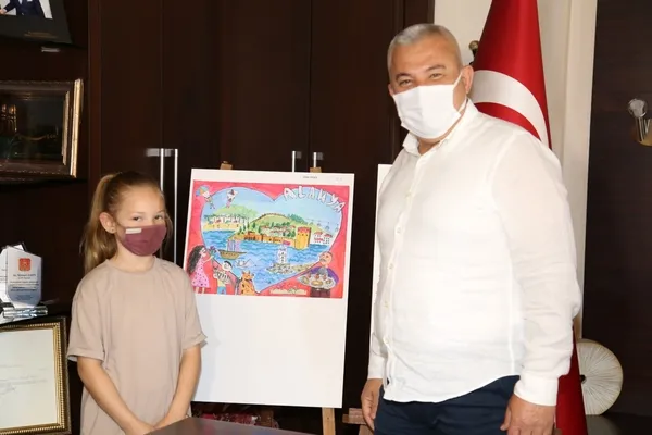"23 Nisan Ulusal Egemenlik ve Çocuk Bayramı kapsamında düzenlediğimiz 'Benim Alanya'm' resim yarışmasında dereceye giren öğrencilerimizi odamızda ağırlayıp, ödüllerini takdim ettik. Alanya ekonomisini canlandırmak için yaptığımız çalışmaların yanı sıra eğitim, spor ve kültür-sanat alanlarında da her zaman elimizden gelen gayreti gösteriyoruz. Bu kapsamda Benim Alanya'm resim yarışması da Alanya'mız açısından önemli bir yere sahip. Yarışmamıza katılan öğrenci kardeşlerimiz Alanya'mızı resmederek ölümsüz eserler ortaya çıkardılar. İnşallah, Covid-19 salgınında normalleşmeye geçtiğimiz zaman bu çocuklarımızın resimlerinden oluşan bir de sergi açacağız. Birbirinden güzel Alanya resimleriyle yarışmamıza katılan bütün çocuklarımızı tebrik eder, dereceye girerek ödül almaya hak kazanan çocuklarımızı da ayrıca kutlarım."