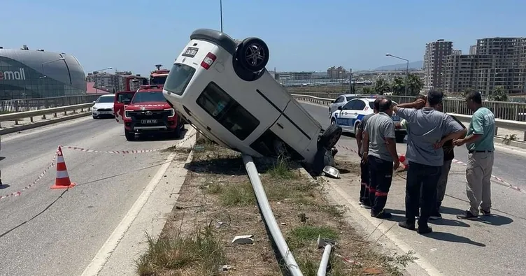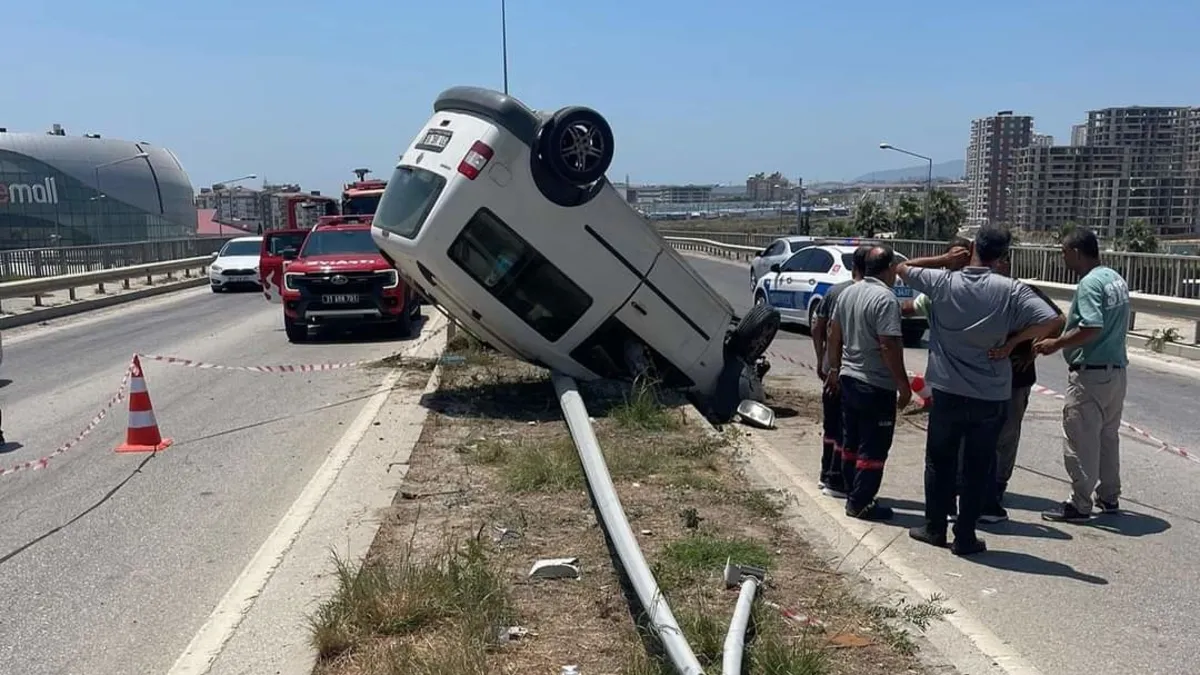 Kaza, Antakya ilçesi Otogar kavşağında meydana geldi. Sabit B. idaresindeki 31 AHC 80 plakalı hafif ticari araç, sürücüsünün direksiyon hakimiyetini kaybetmesi üzerine aydınlatma direğine çarparak takla attı. Aydınlatma direğinin yerinden çıktığı kazada; araçta bulunan S.B. ve B.K. yaralandı. Kazayı gören vatandaşların durumu 112 Acil Çağrı Merkezi'ne bildirmesi üzerine polis, ambulans ve itfaiye ekipleri sevk edildi. Kısa sürede bölgeye gelen itfaiye ekipleri, araçta bulunan 2 kişiyi kurtardıktan sonra sağlık ekiplerine teslim etti. Sağlık ekiplerinin ilk müdahalesinin ardından yaralılar hastaneye sevk edildi. Polis ekipleri kazayla ilgili inceleme başlattı.
