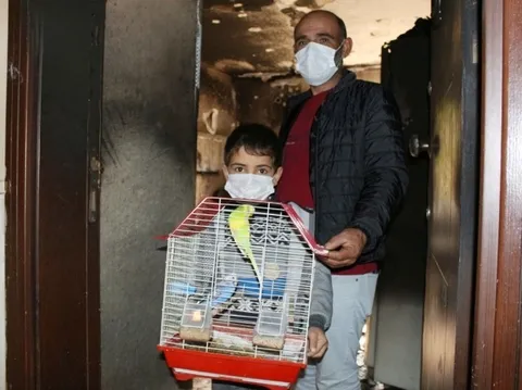 "Dün gece evde oturduğumuz sırada yangın çıktı. O panikle çocukları alıp dışarı çıktık. Yangın büyüdü. Küçük oğlum, 'Limon'um içerde kaldı' diyerek ağlayınca içeri girmeye çalıştı. Ben de ona müdahale ederek kendim içeri girdim. Kuşları alıp dışarı çıktım. Çok zor oldu. Evin içerisi duman doluydu. Kuşları zor buldum. Kapının önüne kendimi zor attım. Kuşları bulduğumda halsizlik vardı. Yangın nedeniyle etkilenmişlerdi. Kuşları kurtarıp oğluma verdim. Çok sevindi. Onların da bir canlı olduğunu unutmamak gerekir."