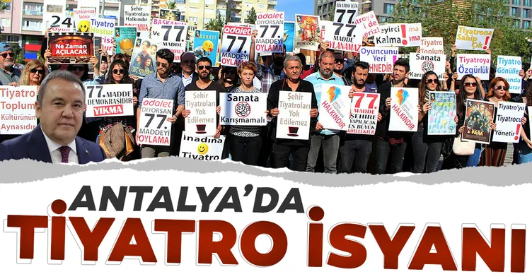 Antalya Büyükşehir Belediyesi'nde geçtiğimiz günlerde sözleşmeleri feshedilen Antalya Şehir Tiyatrosu'nun (AŞT) 48 sanatçı ile AŞT Seyirci Platformu üyeleri belediye önünde toplanarak basın açıklaması yaptı. CHP'li Başkan Muhittin Böcek'e tepki gösteren kalabalık 'Başkanım hani verdiğin sözler', 'Şehir tiyatroları yok edilemez', 'Sanata siyaset karıştırılmamalı', 'Tiyatro hoştur, gerisi boştur' pankartları açtı.