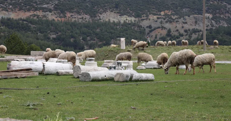 Koyunlarını antik kentte otlatan çoban Hatice T., "Burası gibi boş yerlerde koyunlarımızı otlatıyoruz. İlçe merkezinden buraya geldim. Koyunlarım tarihi eserlere zarar vermez. Ayağıyla para mı kazacak benim koyunlarım?" diye konuştu.