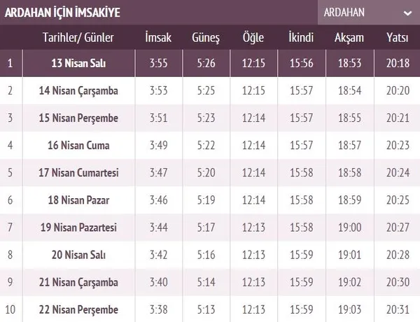 Diyanet tarafından yayımlanan 2021 Ardahan imsakiye ile beraber İftar ve sahur saati de belli oldu. Faziletleri saymakla bitmeyecek kadar çok olan bu mübarek ayda büyük küçük demeden oruç tutmaya ve kendilerine farz kılınan bu ibadeti yerine getirmeye çalışan Müslüman alemi; an itibariyle adeta geri sayıma başladı. Ardahan'da sahur vakti ve iftar saat kaçta? Soruları ile araştırılan il il İmsakiye takvimi Diyanet İşleri resmi sitesi üzerinden duyurulmuştu. Ramazan ayının ilk günüyle beraber konuyla ilgili araştırmalar hız kazandı. Buna göre; Ardahan'da iftar ve sahur vakti saat kaçta? Ezan saat kaçta okunacak? İşte 2021 Ardahan Ramazan imsakiyesi…