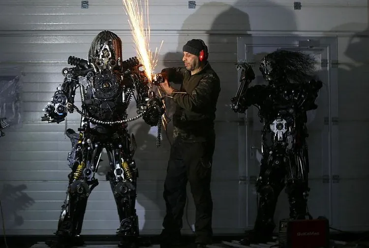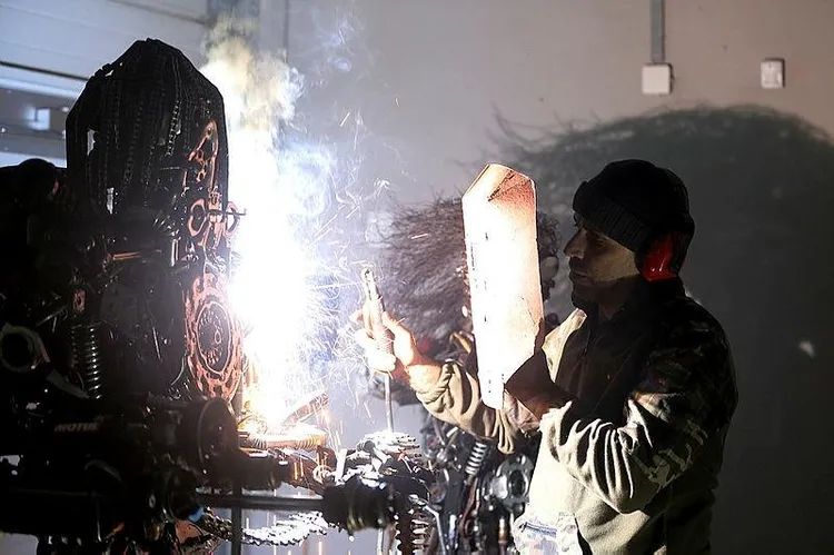 Atık araç malzemeleri motor ustasının elinde sanat eserine dönüşüyor