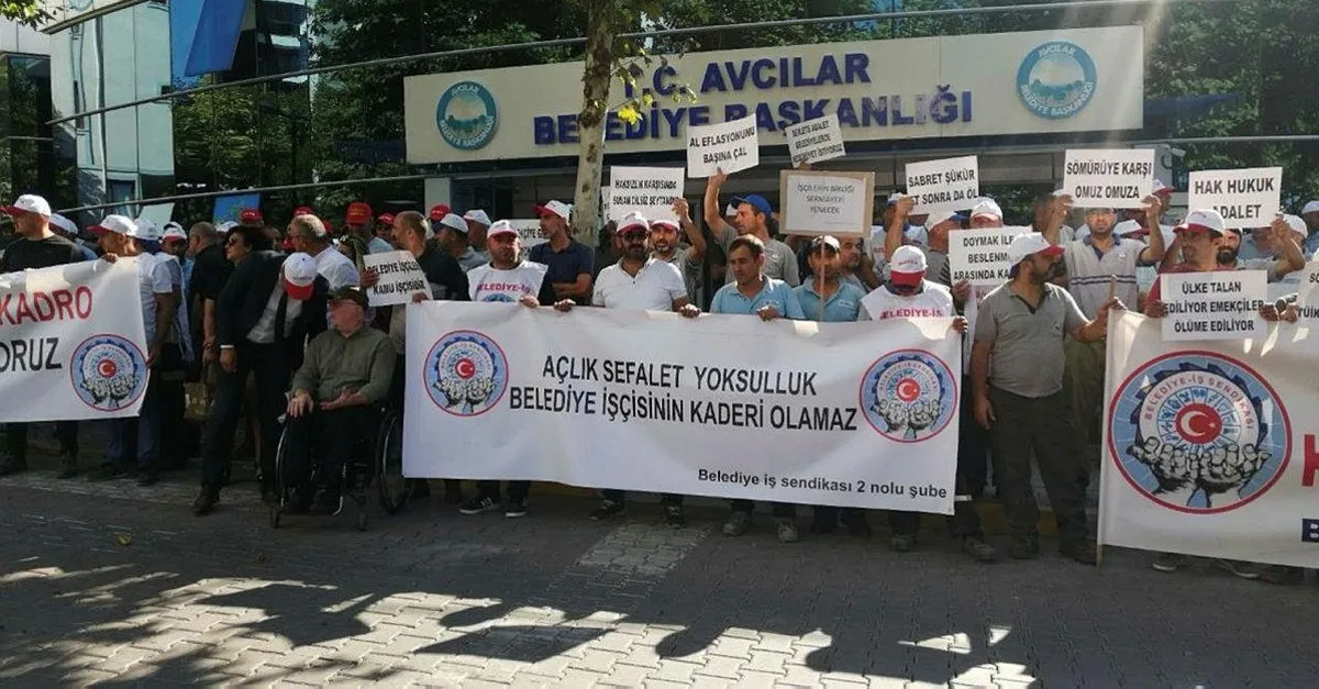 Türk İş'e bağlı Belediye İş Sendikası'na üye işçiler, Avcılar Belediyesi'nde çalışan bin 160 işçinin maaşlarının düzeltilmesi için eylem yaptı. Belediye önünde toplanarak ücretlerinde iyileştirme yapılmasını isteyen işçiler, sloganlar attı. Belediye İş 2 No'lu Şube Başkan Yardımcısı Savaş Doğan, geçen yıl yürürlükte imzaladıkları sözleşme ardından her ürünün fiyatının kat kat arttığını, Avcılar Belediyesi yönetiminin bazı müdürlerin maaşlarını 30 bin TL'ye çıkarıldığı halde işçilerinin 12 bin TL aylık ücretle geçinmelerinin istendiğini söyledi. Yöneticilerin kafalarına göre sistem uyguladığını, işçilere mobing uyguladığını öne süren Doğan, Avcılar Belediye Başkanı Turan Hançerli'nin bu duruma müdahale etmesini ve işçilerin çalışma koşul ve ücretlerinin düzeltilmesini istedi.
