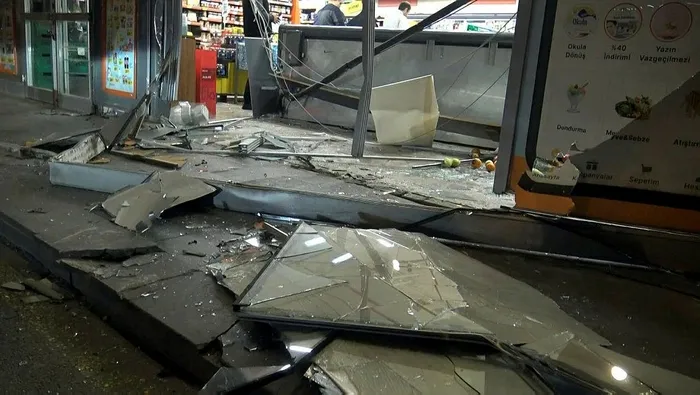 Kaza ile ilgili konuşan kurye, "Durakta oturuyorduk. Arkadaş buradan girdi ve birden ses geldi. Araba direkt cama girdi. Yaralı yoktu. Sağa sola çarpmadan direkt buraya girdi. Kazadan sonra hemen yaralı var mı diye baktık. Polisi aradık. Sonra da araç çekildi" dedi.