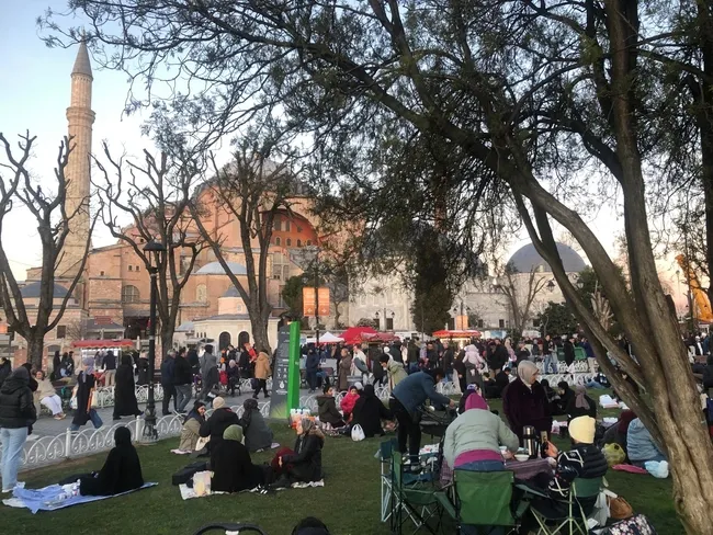 İstanbul'da Ramazan-ı Şerif ayı boyunca Ayasofya-i Kebir Cami-i Şerifi ile Sultanahmet Camii arasında büyük bir coşku yaşanıyor. İftar saatine saatler kala bir şehir geleneği olan camileri ziyaretten sonra Sultanahmet Meydanı'nda büyük bir insan kalabalığı heyecanlı bir telaş içinde oruçlarını açmak için sofralar kuruyor; çeşit çeşit yemekler, salatalar, içecekler sofralara itinayla yerleştiriliyor.