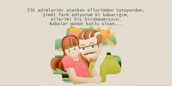 Bugün babalar günü ve ben en güzel hatıralarımızı aklımdan geçirip seninle yaşıyorum. Her an biraz daha özlem duyuyorum. Büyürken seni daha iyi anladım. Her yaptığın için teşekkürler. Kucak dolusu sevgiler, babalar Günü'n kutlu olsun.