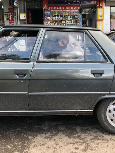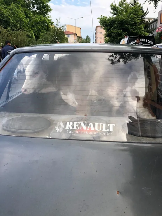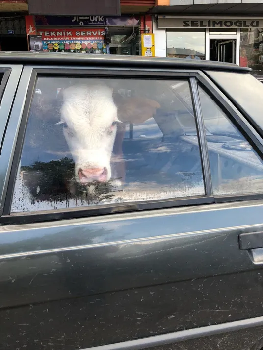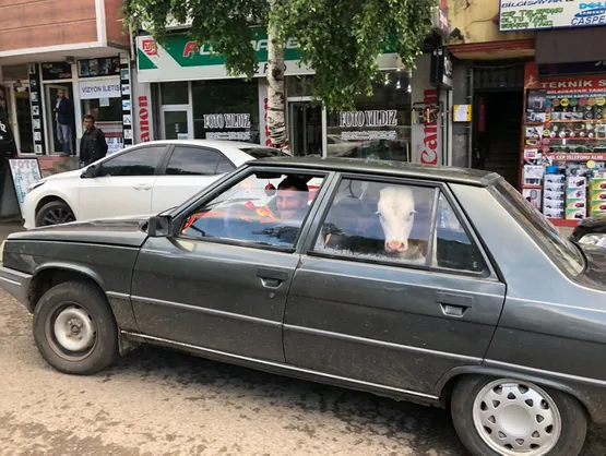 Bilgin, buzağısını otomobilinin arka koltuğunda tedavi ettirebilmek için veteriner hekime götürdü.