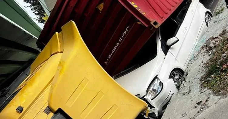 Bakırköy’de köprüye çarpan tır otomobilin üstüne devrildi: 1 yaralı | Video